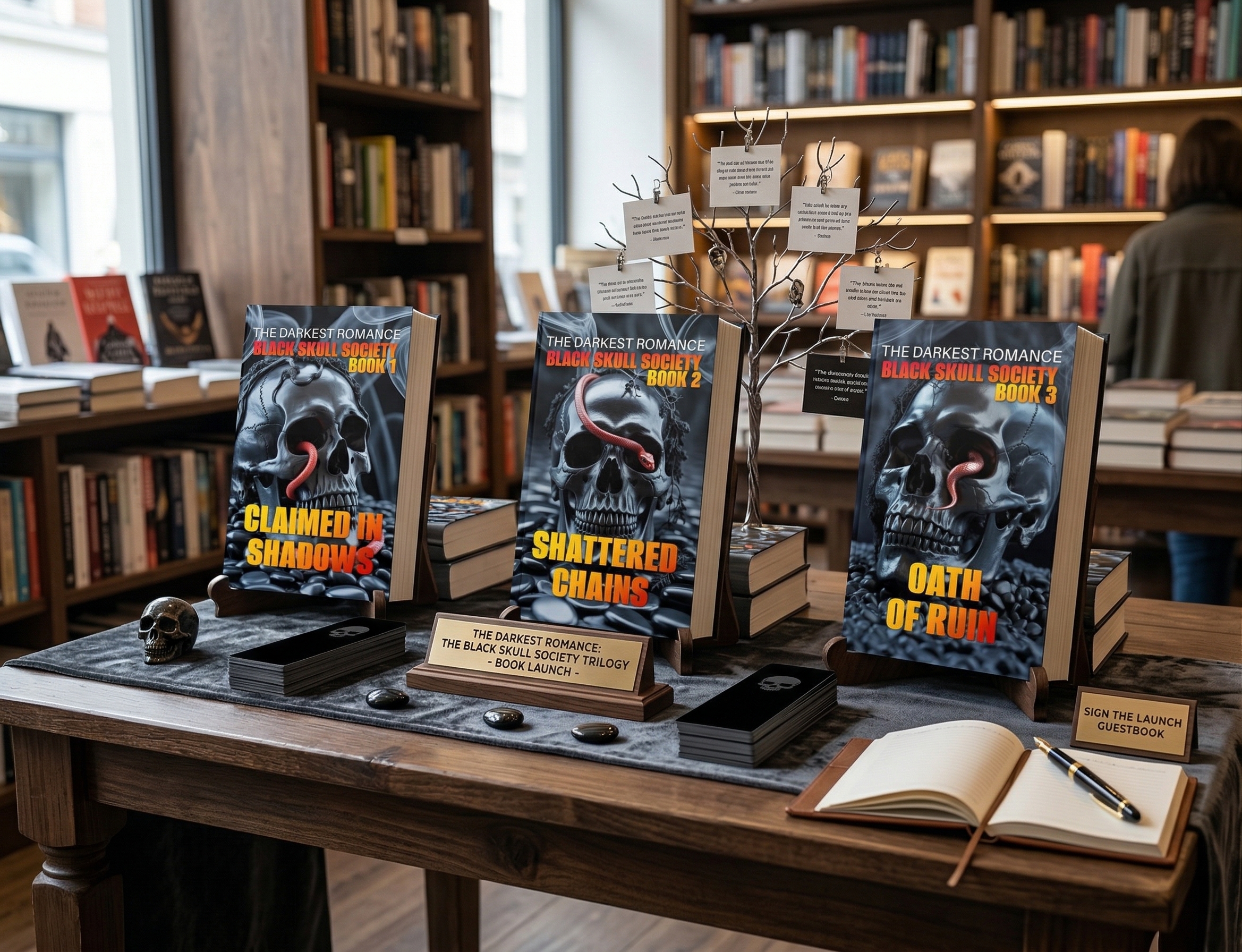 Each book in the Black Skull Society series is a standalone dark romance with its own couple and complete HEA. Connected by a clandestine institution that trades in people, power, and silence — and the rebellion that tears it apart from the inside.